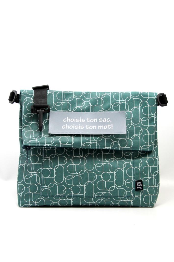 est une besace pliée en deux, en toile enduite imperméable.Création artisanale made in Vevey.