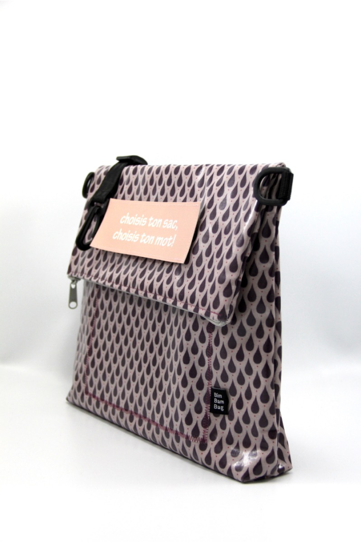 est une besace pliée en deux en toile enduite.Création artisanale made in Vevey.