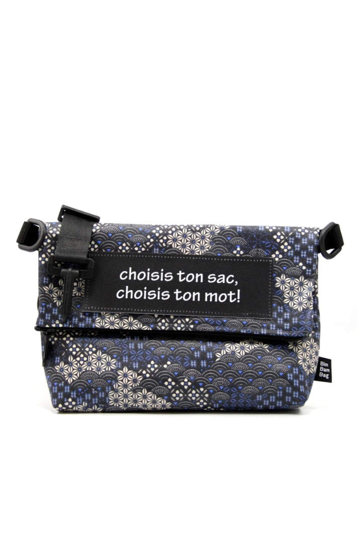 est une besace pliée en deux, en toile enduite imperméable.Création artisanale made in Vevey.