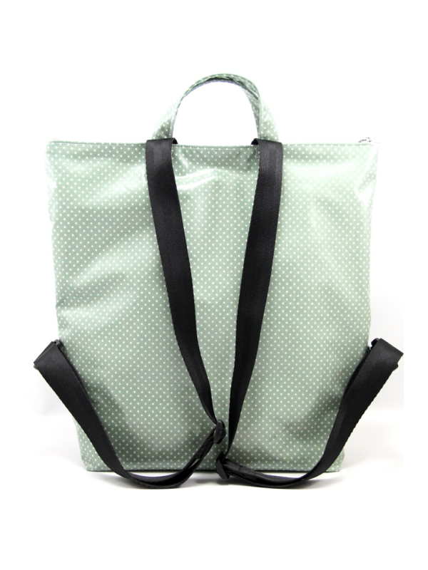 Il a deux petites anses en toile cirée pour le porter à la main et 2 bandoulières réglables de 3 cm de large pour le portage au dos.