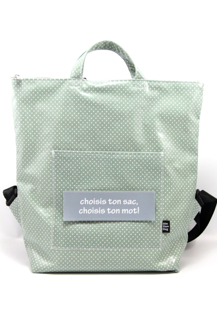 Il a une poche intérieure cousue en applique et une poche extérieure cousue aussi en applique avec un velcro pour y coller une étiquette-mot de votre choix à compter en plus dans le prix du sac.