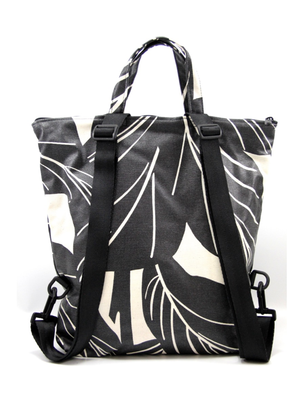 Il a deux petites anses en toile enduite pour le porter à la main et 2 bandoulières réglables de 3 cm de large pour le portage au dos.