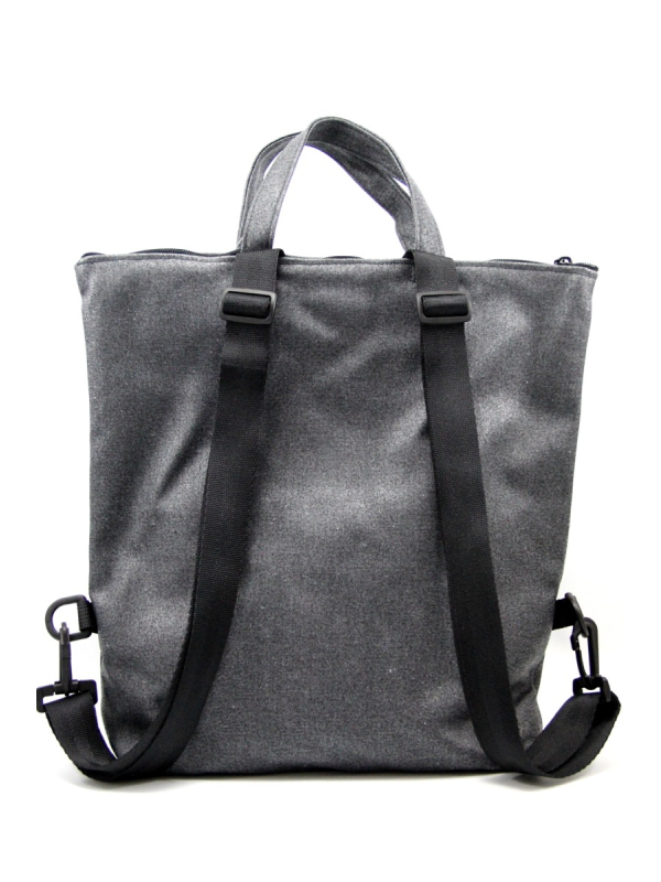 Il a deux petites anses en toile enduite pour le porter à la main et 2 bandoulières réglables de 3 cm de large pour le portage au dos.