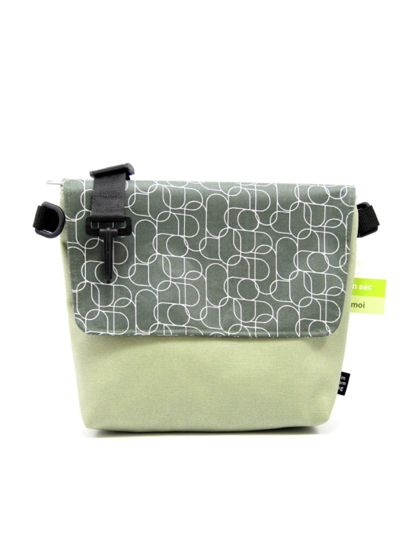 Ce Capucine est un sac en bandoulière de format carré en canevas enduit, avec un rabat en toile enduite cousu.