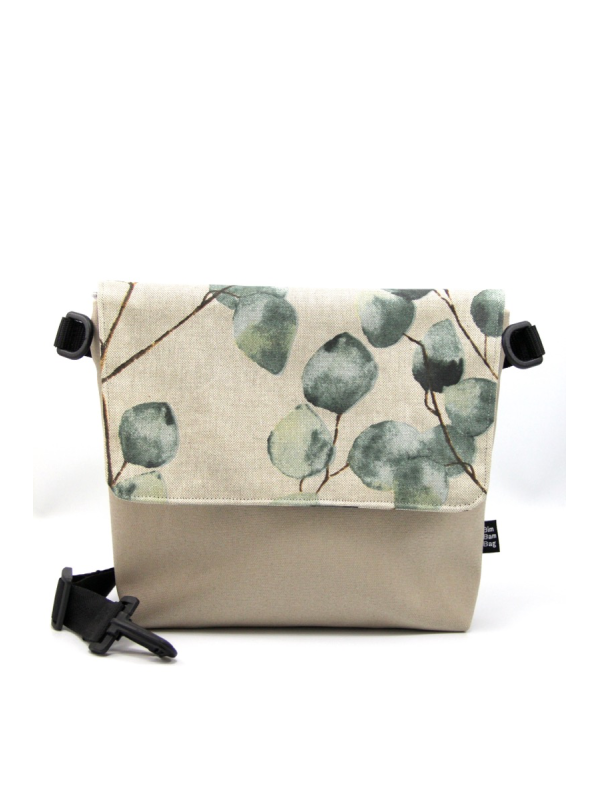 Ce Capucine est un sac en bandoulière de format carré en canevas enduit, avec un rabat en toile enduite cousu.