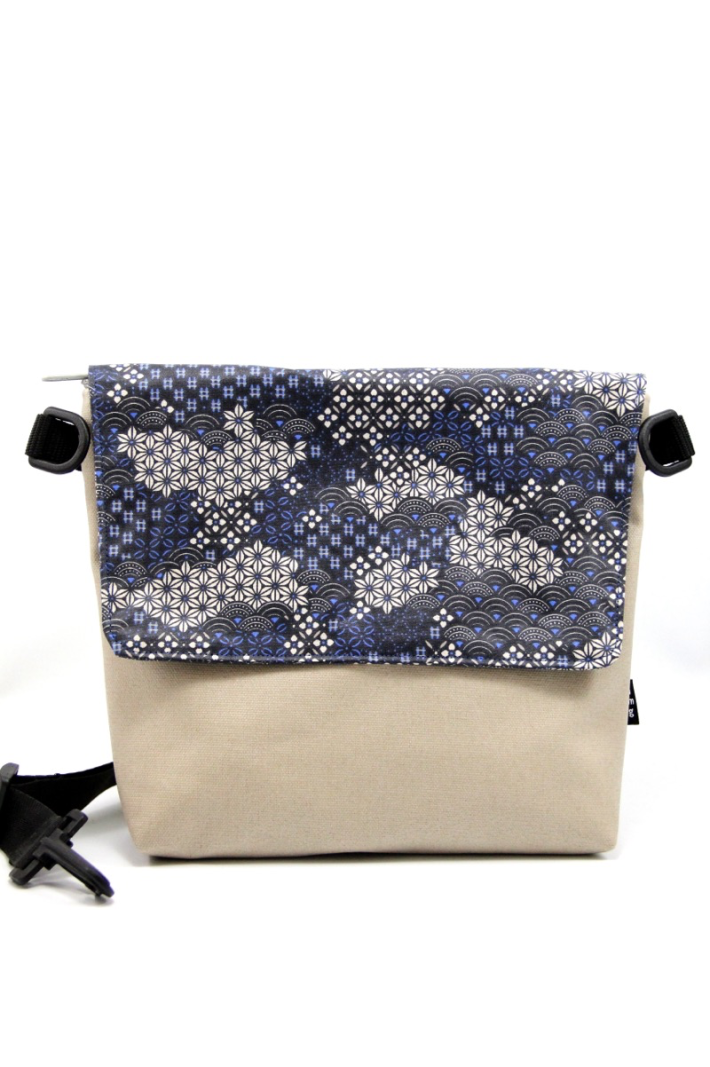 Ce Capucine est un sac en bandoulière de format carré en canevas enduit, avec un rabat en toile enduite cousu.