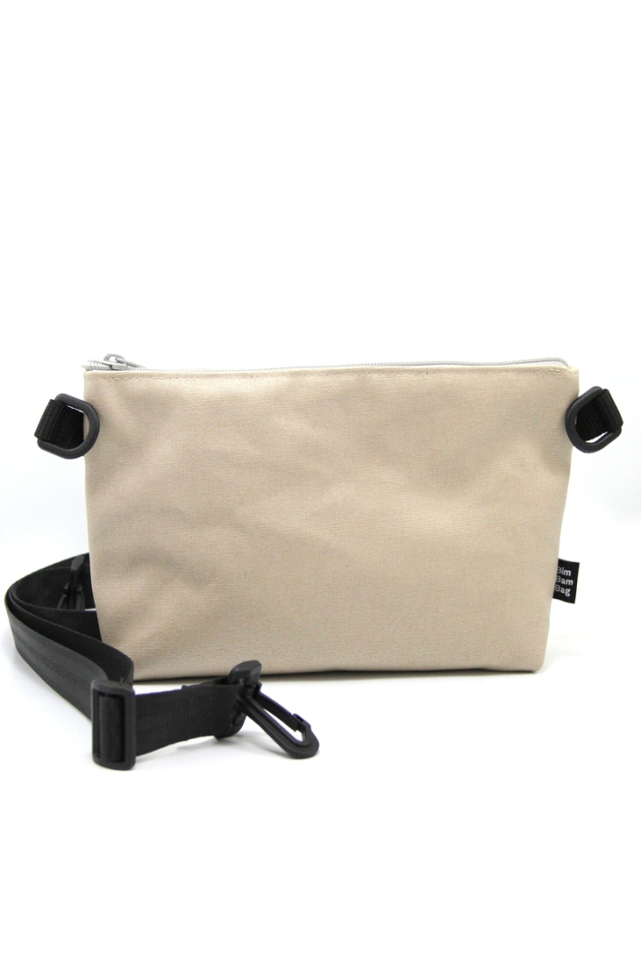 La grande pochette est en canevas de coton enduit,