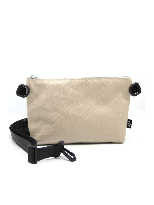 Bandoulière de 3 cm de large réglable sur laquelle s'accrochent les 2 sacs.