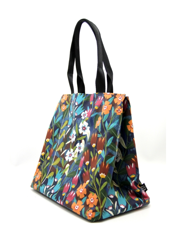 Sac à pic-nic en toile enduite souple, vous pouvez y mettre votre boîte à repas de 16/24cm au fond à plat.