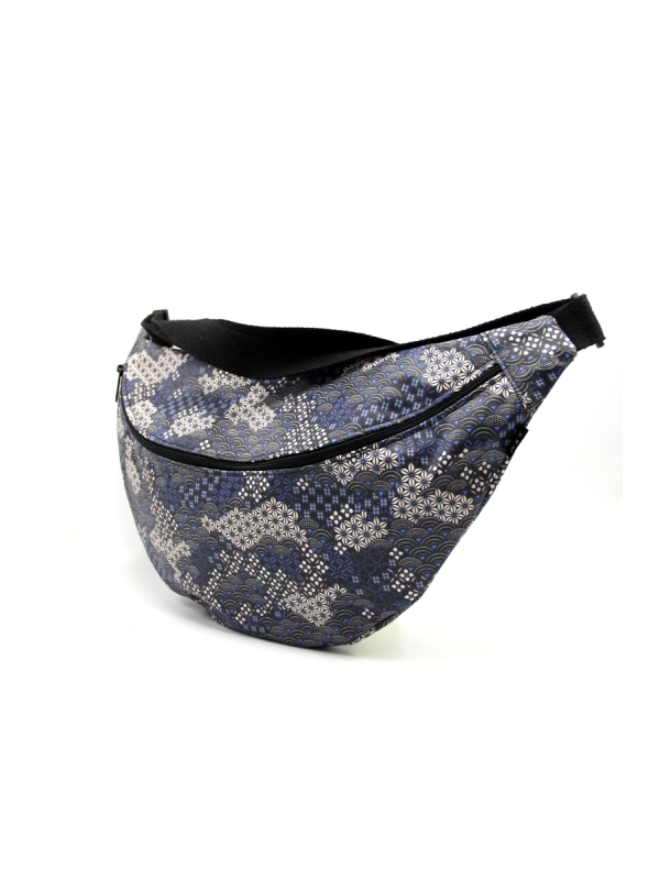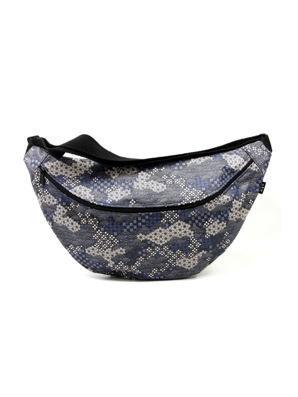 Elle se porte de travers sur la poitrine, ou dans le dos avec une sangle de 3 cm de large, réglable, en gros coton tressé.