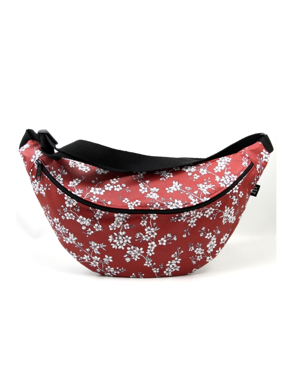 Elle se porte de travers sur la poitrine, ou dans le dos avec une sangle de 3 cm de large, réglable, en gros coton tressé.