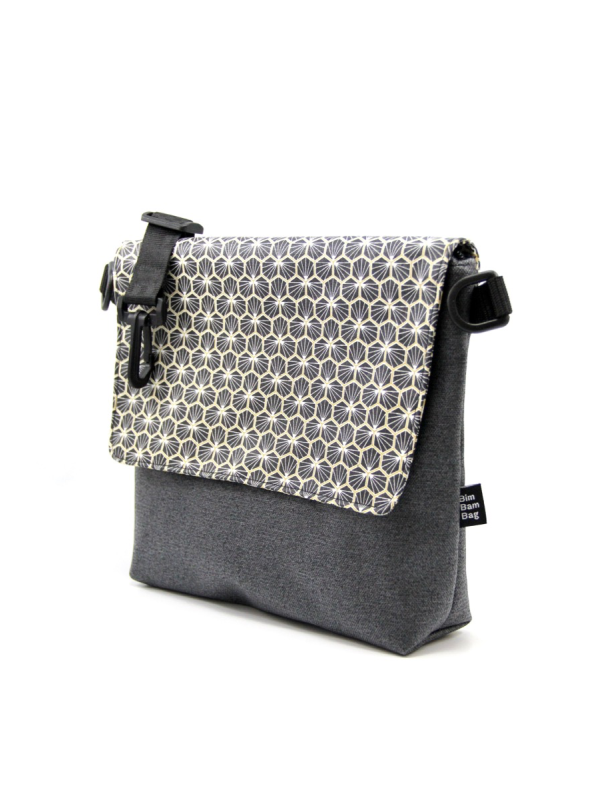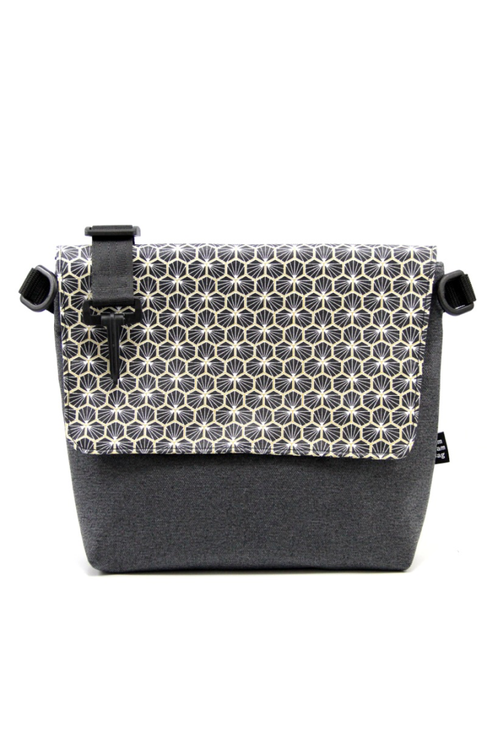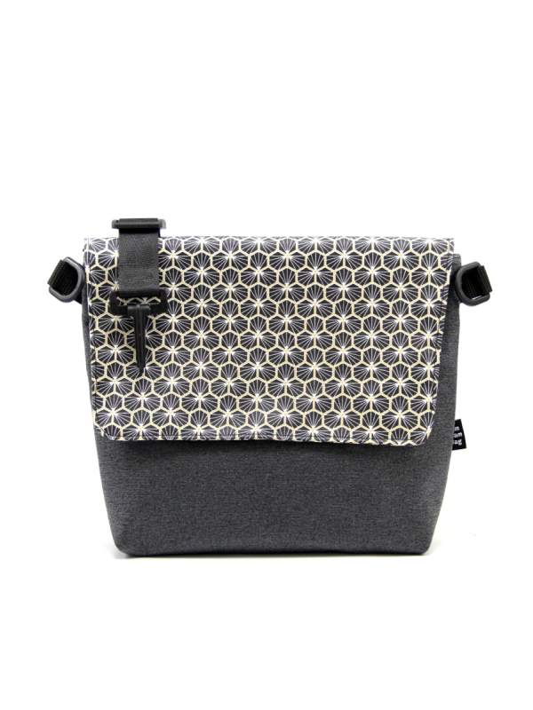 sac à porter en bandoulière, de format carré avec un rabat cousu.