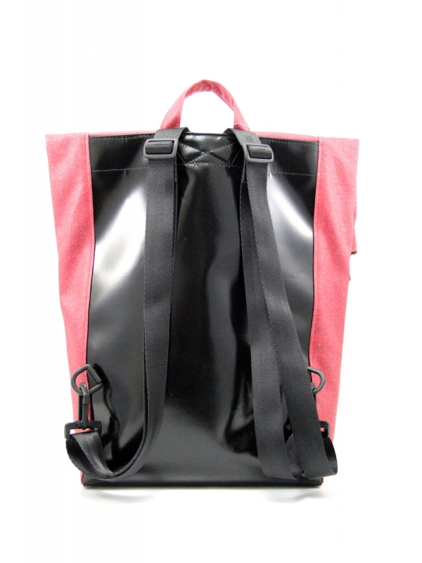 En toile de canevas enduit, derrière et dos en bâche pour plus de maintien, intérieur doublé en toile épaisse et enduite.