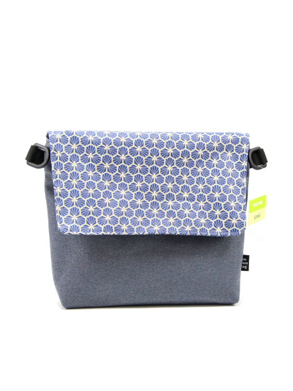 sac à porter en bandoulière, de format carré avec un rabat cousu.