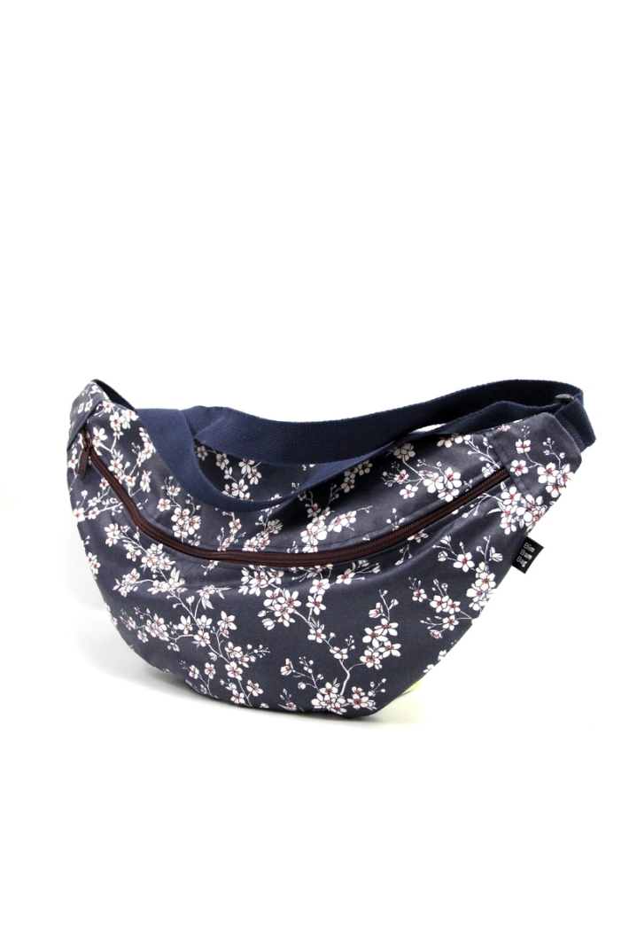 Elle se porte de travers sur la poitrine, ou dans le dos avec une sangle de 3 cm de large, réglable, en gros coton tressé.