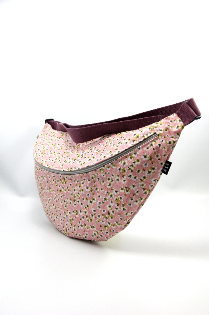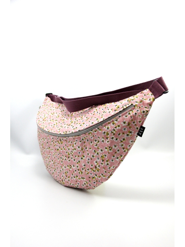 Elle se porte de travers sur la poitrine, ou dans le dos avec une sangle de 3 cm de large, réglable, en gros coton tressé.