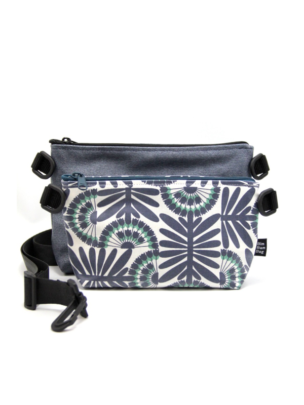 Bandoulière de 3 cm de large réglable sur laquelle s'accrochent les 2 sacs.