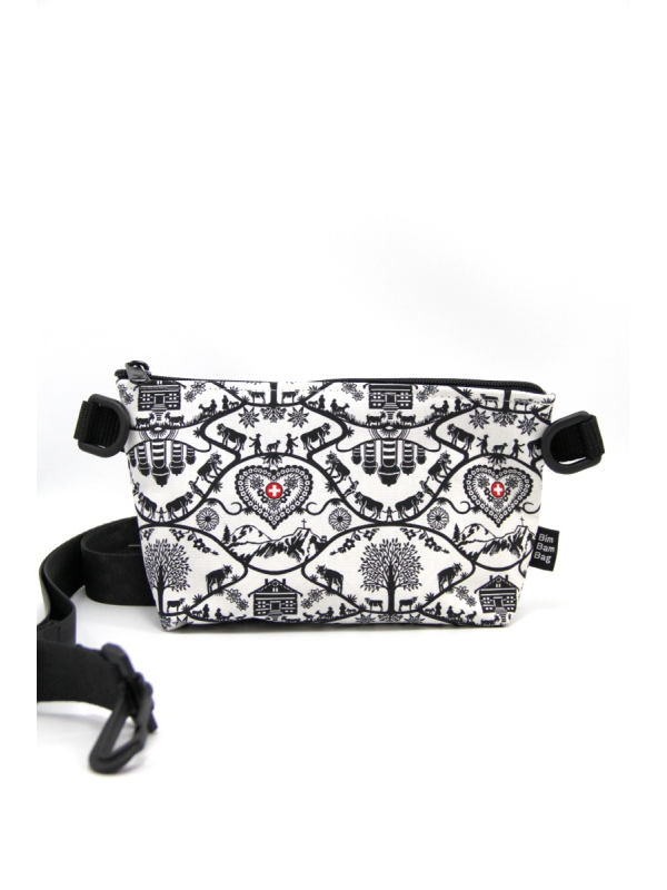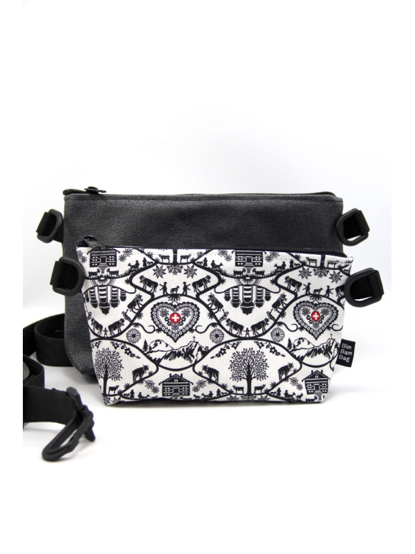 Bandoulière de 3 cm de large réglable sur laquelle s'accrochent les 2 sacs.