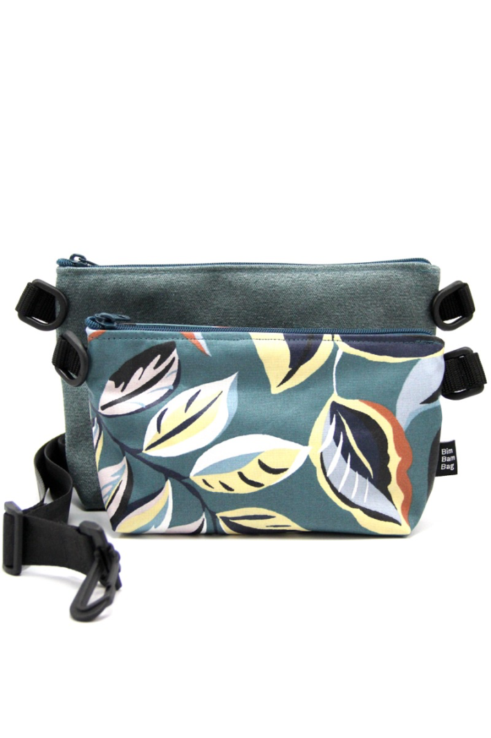 Bandoulière de 3 cm de large réglable sur laquelle s'accrochent les 2 sacs.