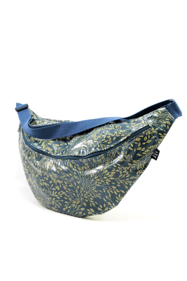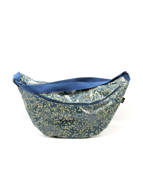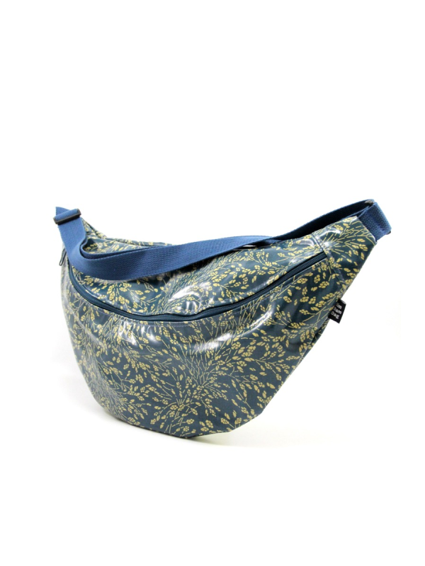 Elle se porte de travers sur la poitrine, ou dans le dos avec une sangle de 3 cm de large, réglable, en gros coton tressé.