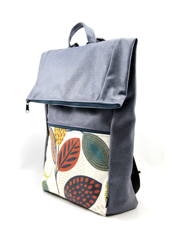 En toile de canevas enduit, dessous et dos en bâche pour plus de maintien, poche devant en toile enduite fantaisie qui amène l'originalité de ce sac à dos. intérieur doublé en toile enduite.