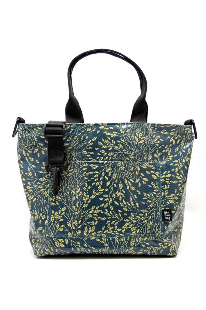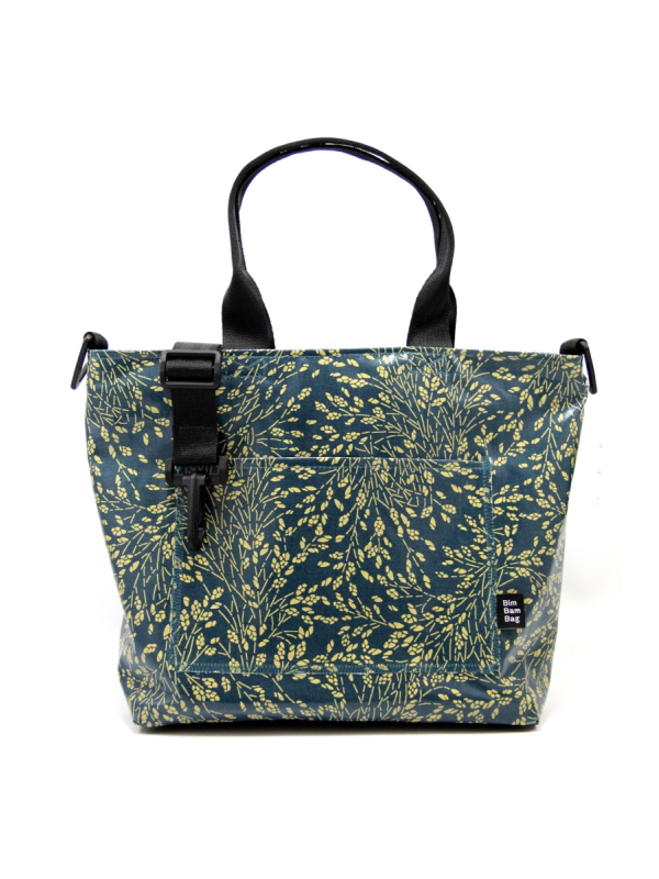 Sa toile cirée, son fond en bâche robuste et sa doublure soignée en font un sac imperméable.