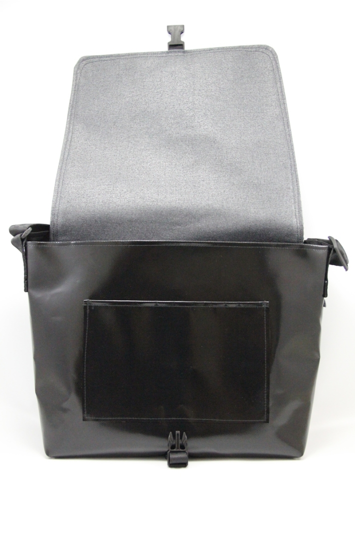 Le "Mercredi" est une sacoche A4 fond en bâche unie avec un rabat cousu.