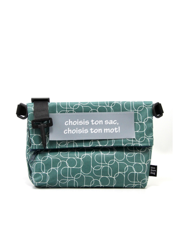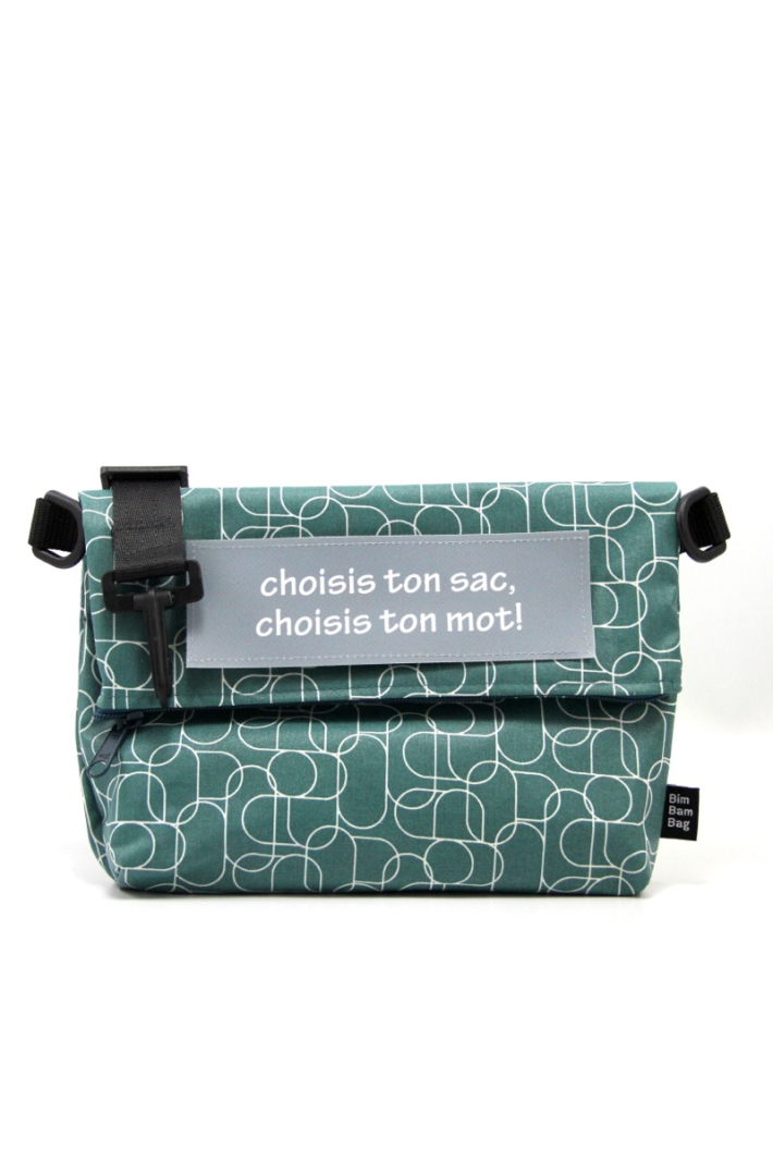 Un velcro cousu sur le devant du sac, pour y coller un mot de votre choix ( à compter en plus dans le prix).