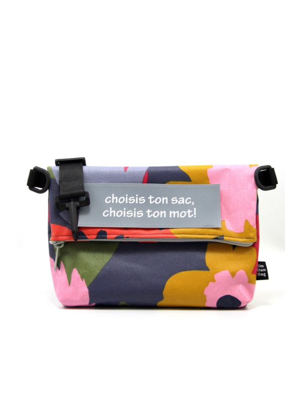 Un velcro cousu sur le devant du sac, pour y coller un mot de votre choix ( à compter en plus dans le prix).