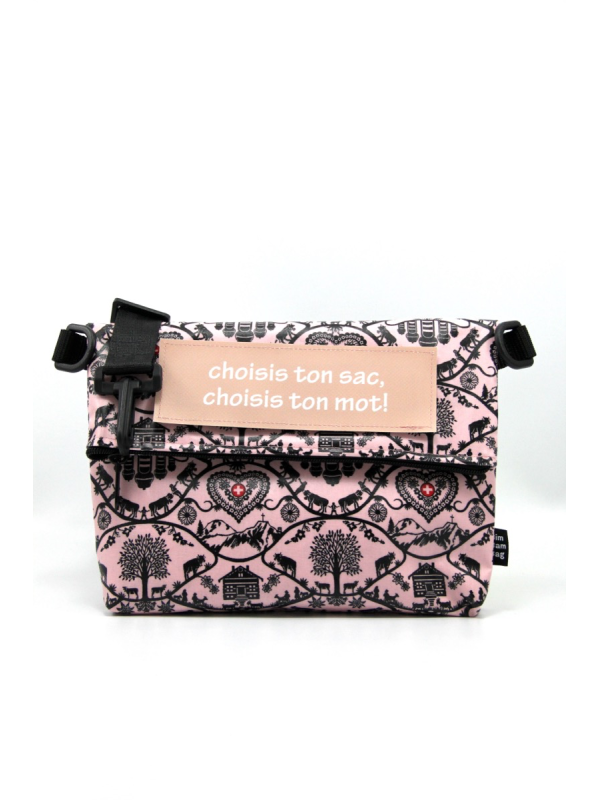Un velcro cousu sur le devant du sac, pour y coller un mot de votre choix ( à compter en plus dans le prix).