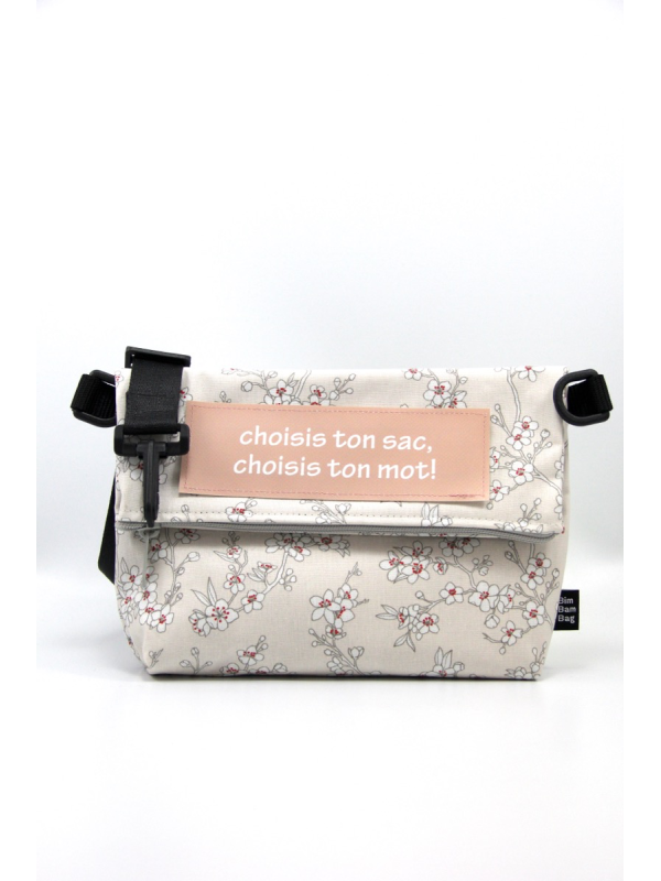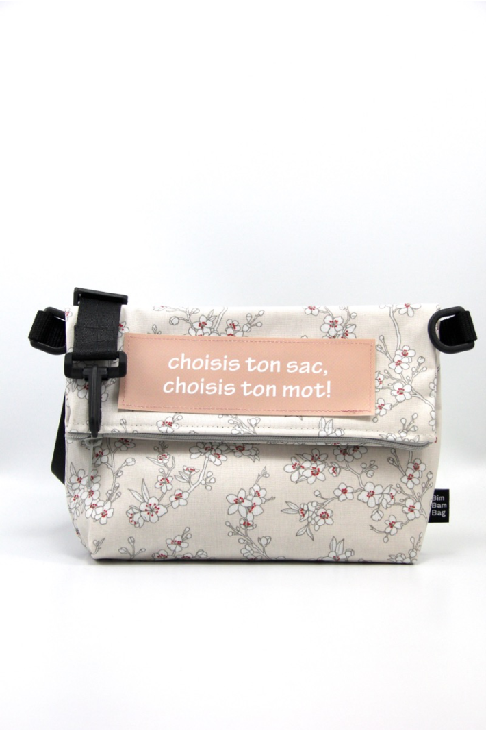 Un velcro cousu sur le devant du sac, pour y coller un mot de votre choix ( à compter en plus dans le prix).