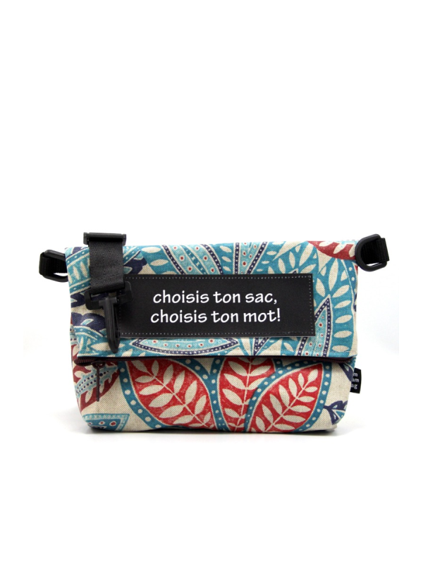 Un velcro cousu sur le devant du sac, pour y coller un mot de votre choix ( à compter en plus dans le prix).