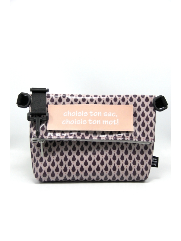 Un velcro cousu sur le devant du sac, pour y coller un mot de votre choix ( à compter en plus dans le prix).