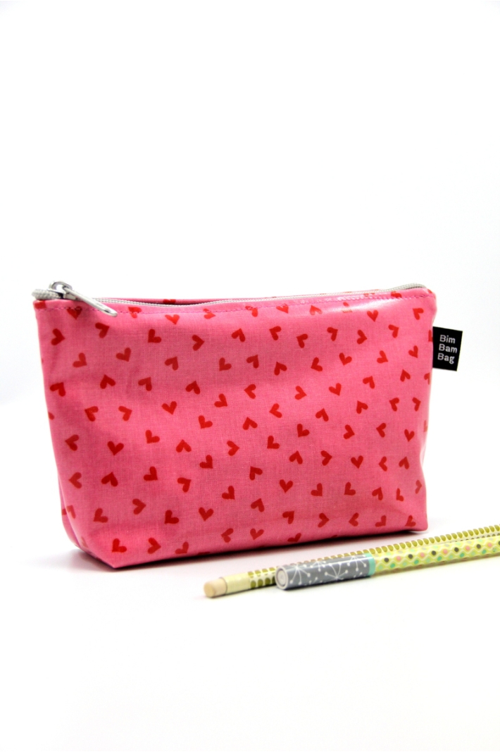 petite trousse de toilette en toile cirée, doublée, pour tous les jours.