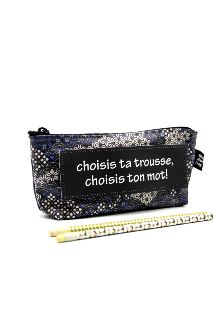 La trousse à mot, ou plumier, en toile enduite, idéale pour vos affaires d'école, votre petit nécessaire de maquillage de tous les jours ou votre petit barda.