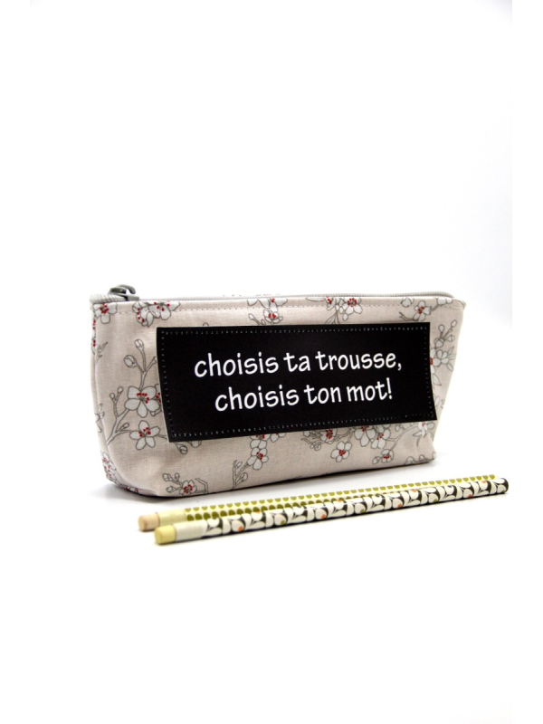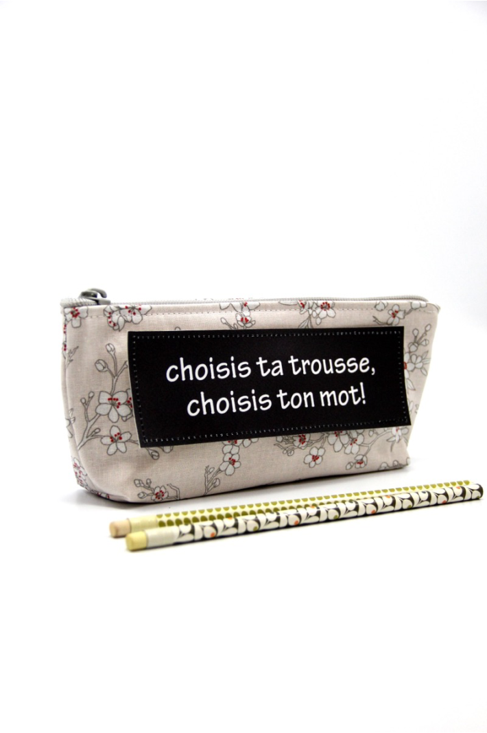 La trousse à mot, ou plumier, en toile enduite, idéale pour vos affaires d'école, votre petit nécessaire de maquillage de tous les jours ou votre petit barda.