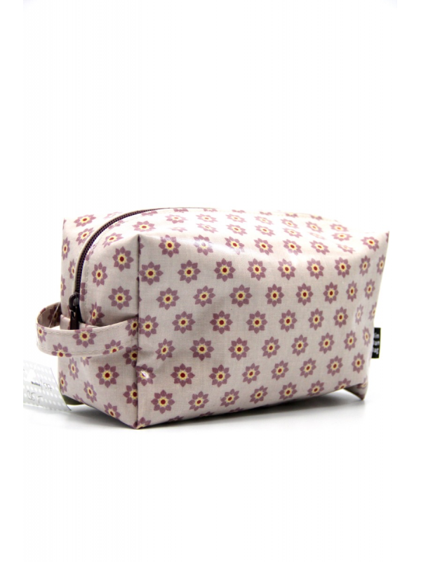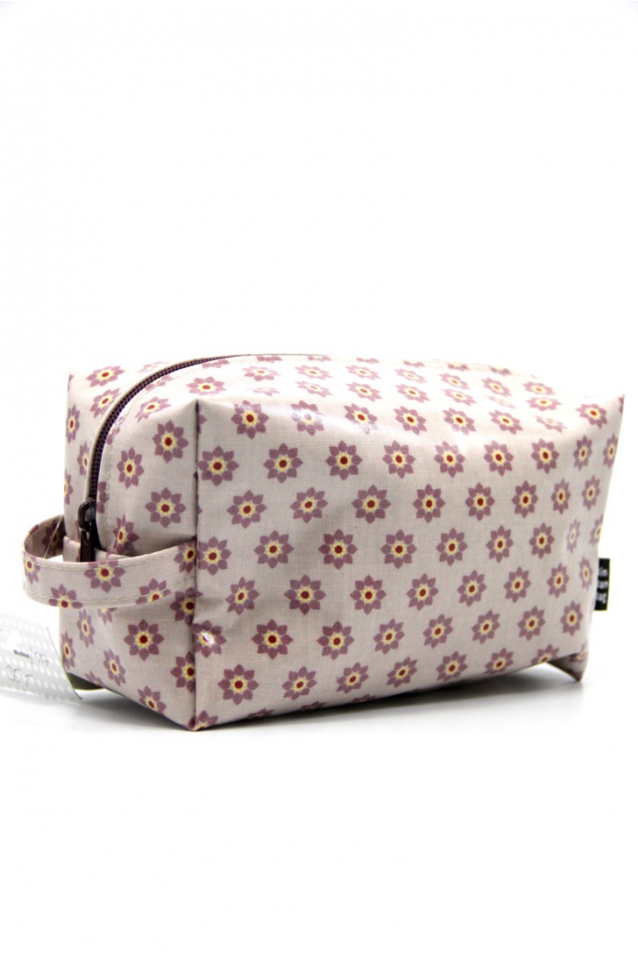 la trousse Nora en toile cirée avec une poignée pour plus de confort.