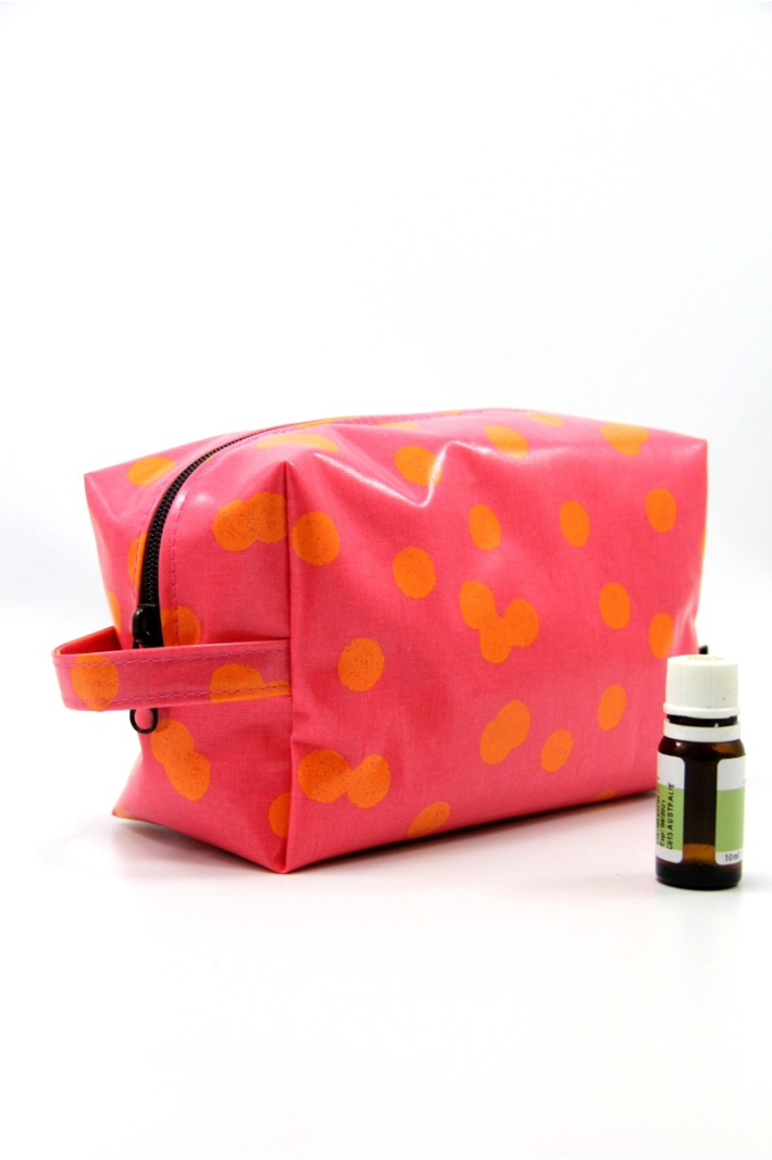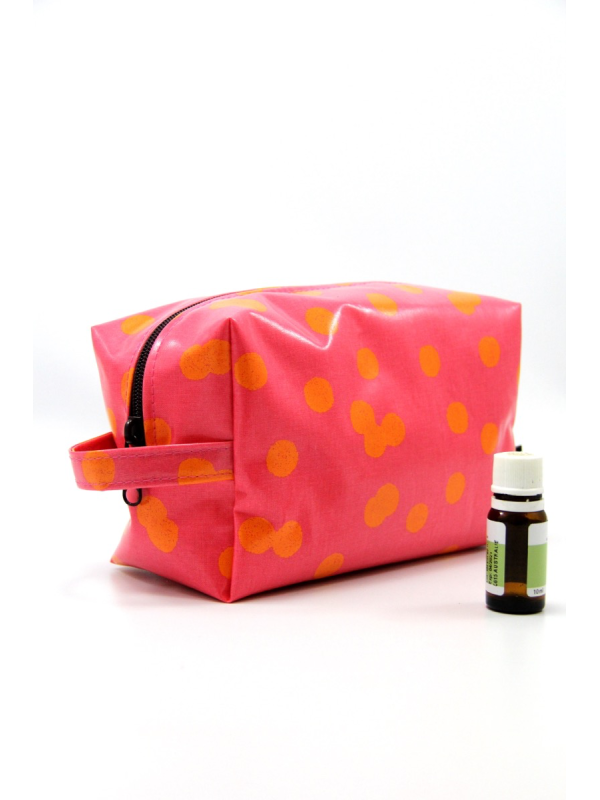 la trousse Nora en toile cirée avec une poignée pour plus de confort.