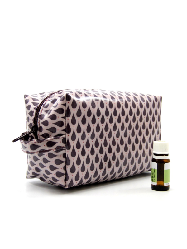 la trousse Nora en toile cirée avec une poignée pour plus de confort.