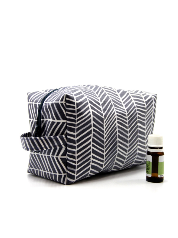 la trousse Nora en toile cirée avec une poignée pour plus de confort.