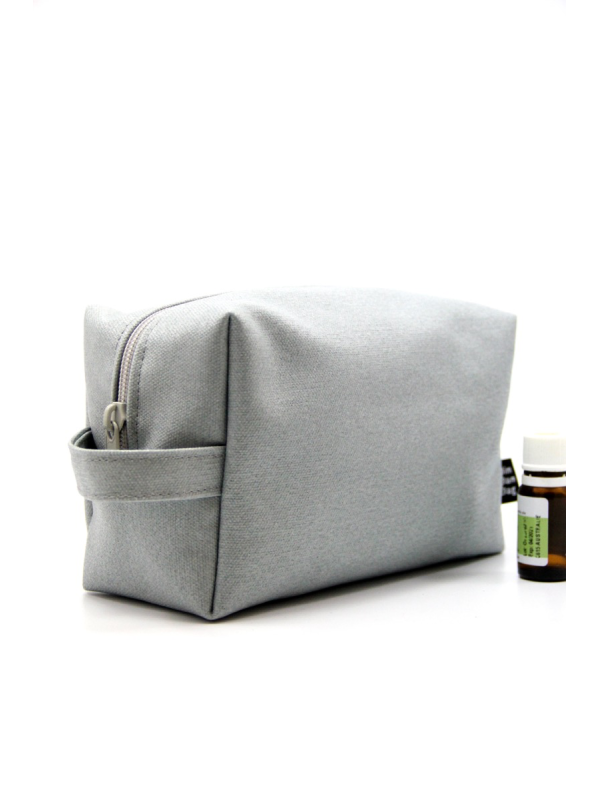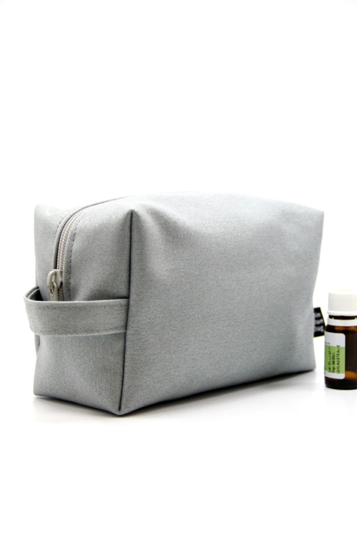 la trousse Nora en toile de canevas enduit avec une poignée pour plus de confort.