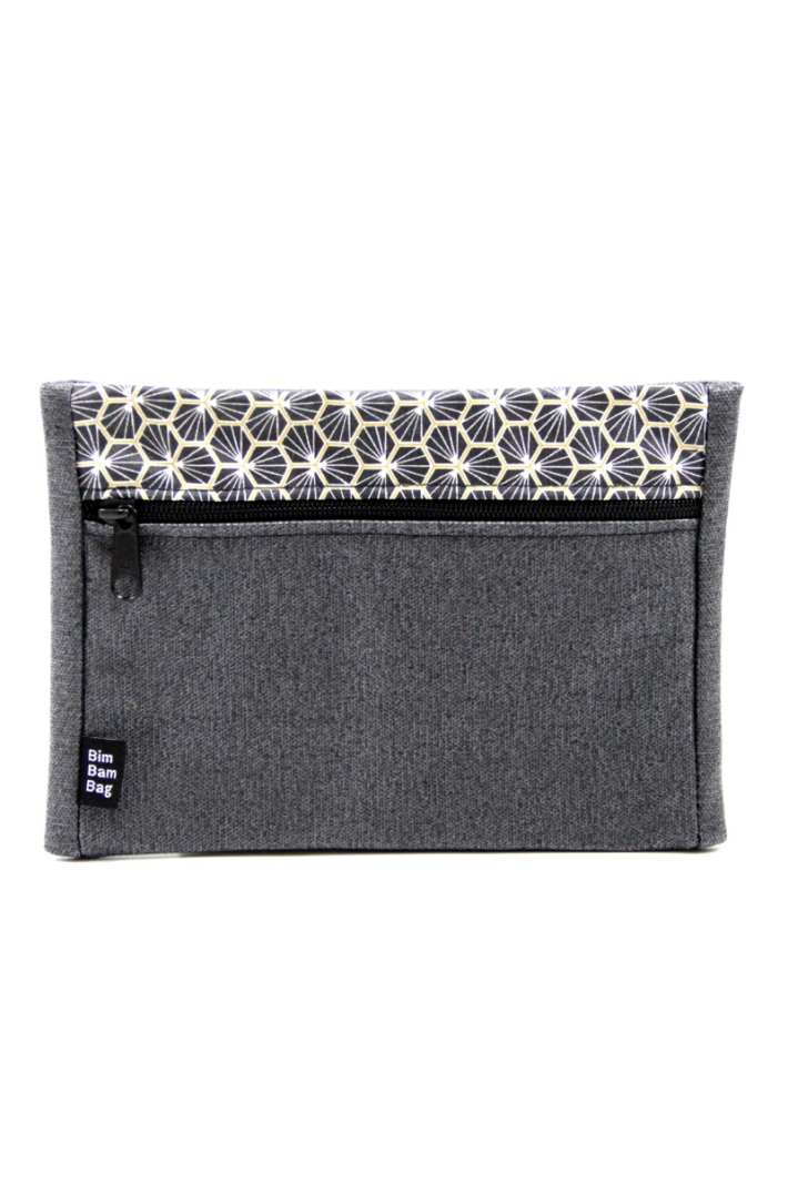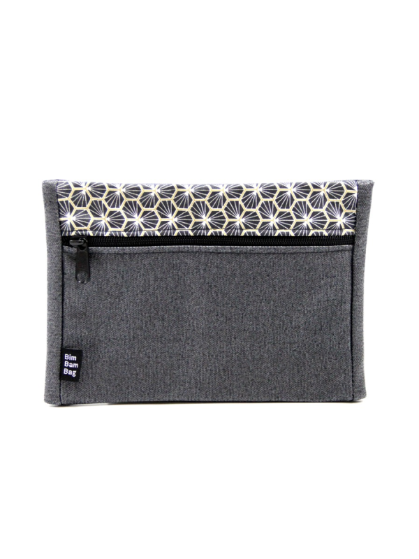 Trousse plate en toile de canevas enduit avec 2 compartiments intérieurs et 1 fermeture éclair.