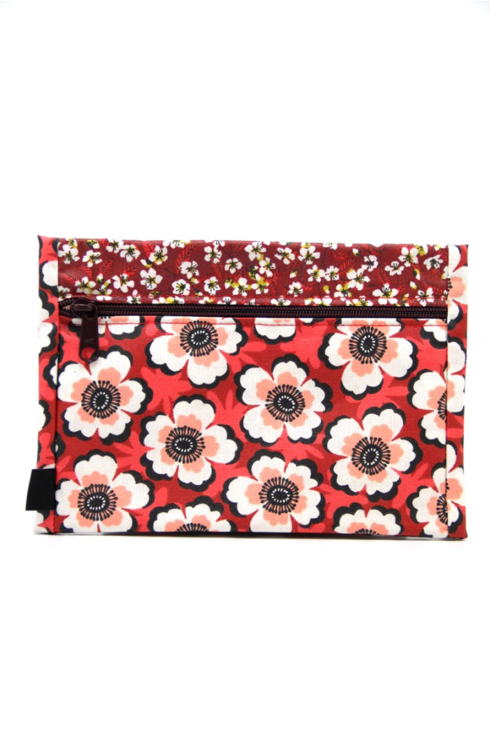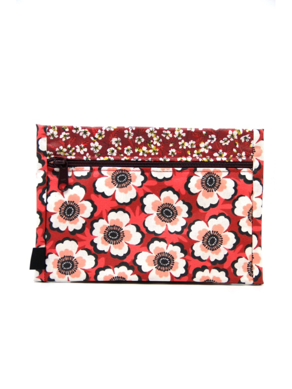 Trousse plate en toile enduite avec 2 compartiments intérieurs et 1 fermeture éclair.