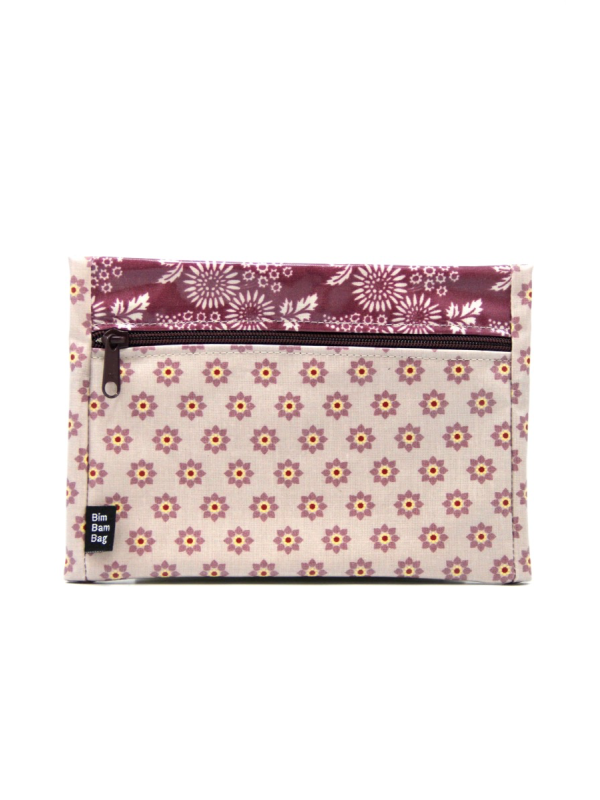 Trousse plate en toile cirée avec 2 compartiments intérieurs et 1 fermeture éclair.