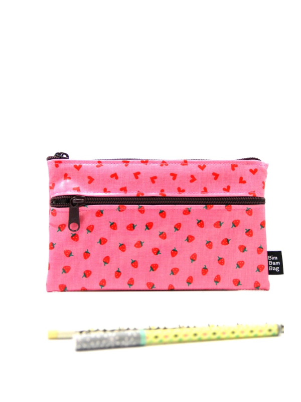 Trousse plate en toile cirée avec 2 compartiments et 2 fermetures éclair.